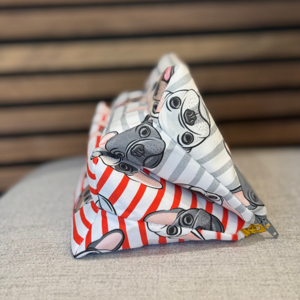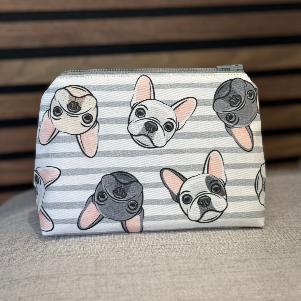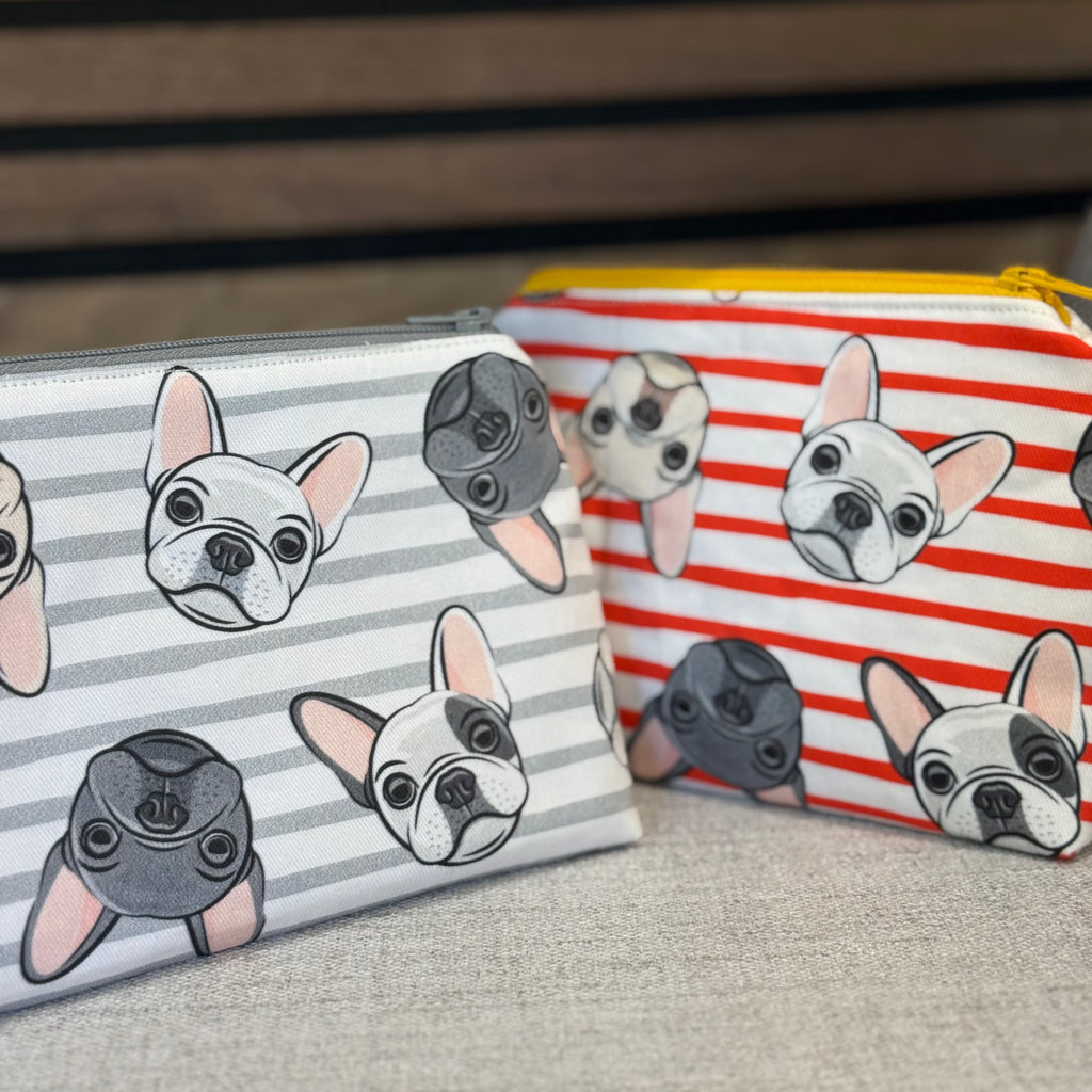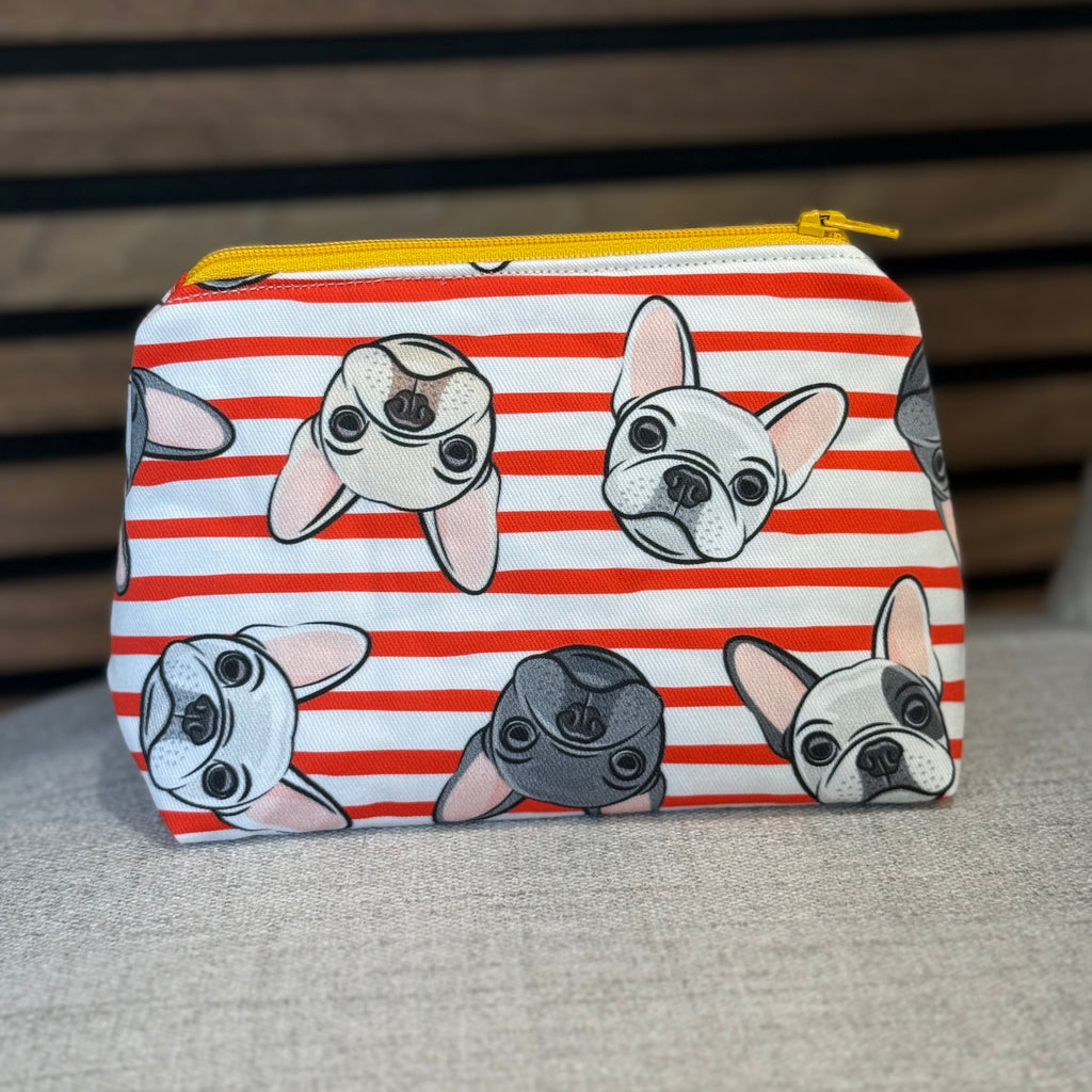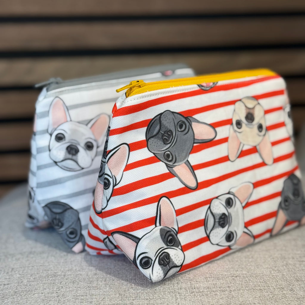These cotton makeup bags are stitched up with playful patterns and colors that bring a little joy to your everyday routine. Each bag has a smooth zipper top with a silver heart charm, is fully lined with cotton fabric, and has a hidden layer of interfacing for extra support and durability. Perfect for stashing your makeup, toiletries, art supplies, or any little treasures you want to keep organized - in style. Measures about 6.5"x5"x3